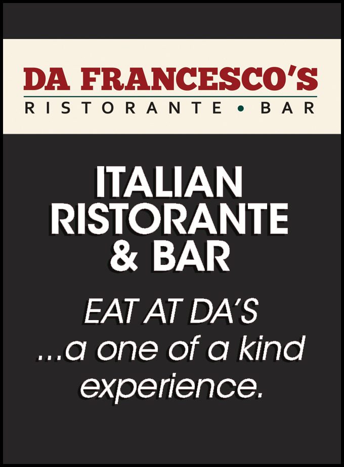 Da Francesco’s also offers weekly specials, live entertainment and a full bar, with an extensive wine menu. It’s sure to be an evening you won’t forget.